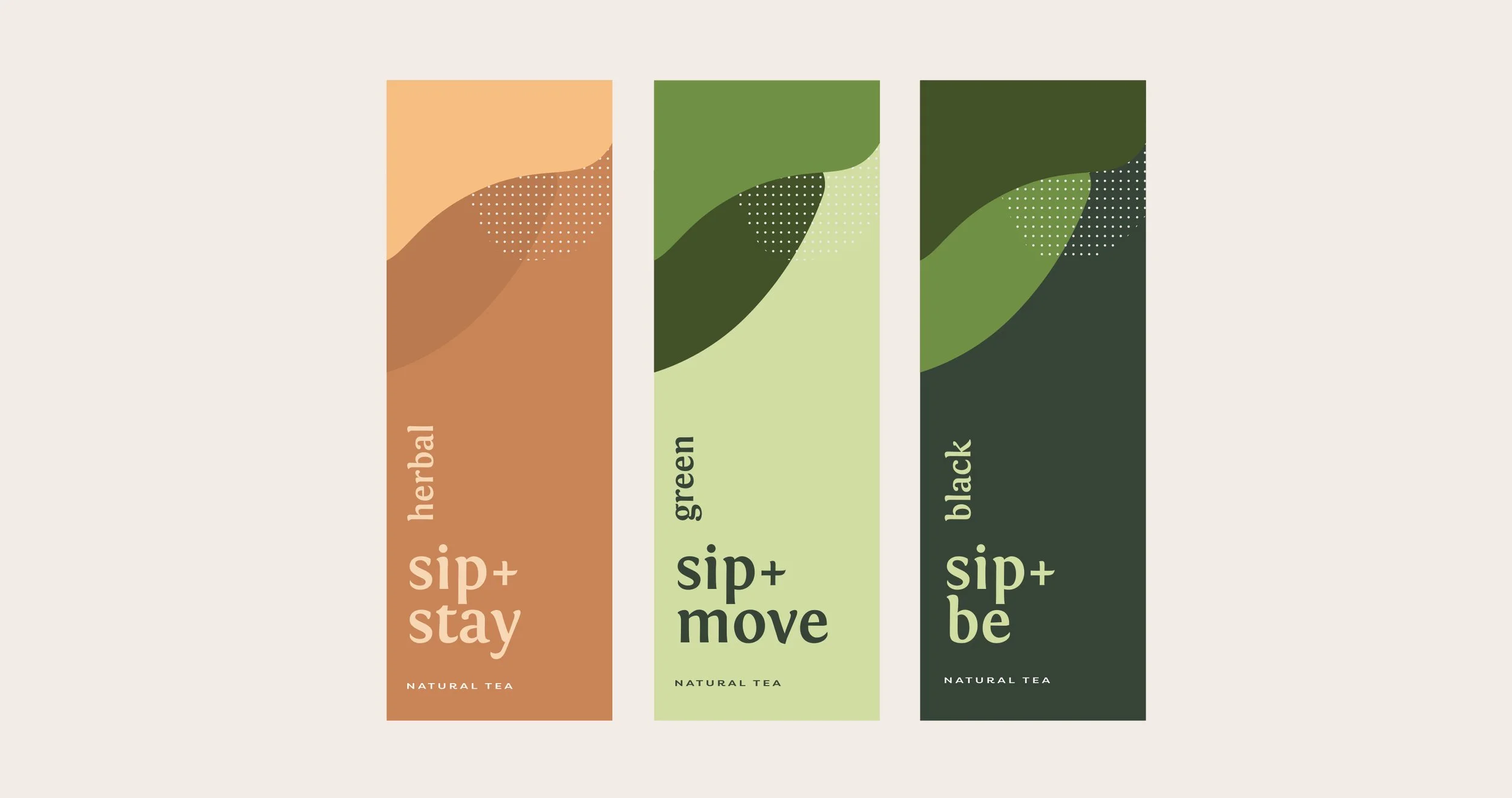 A layered design inspired by modern natural elements: this organic tea brand design features crisp typography, exuberant color palette, and custom illustrations.
